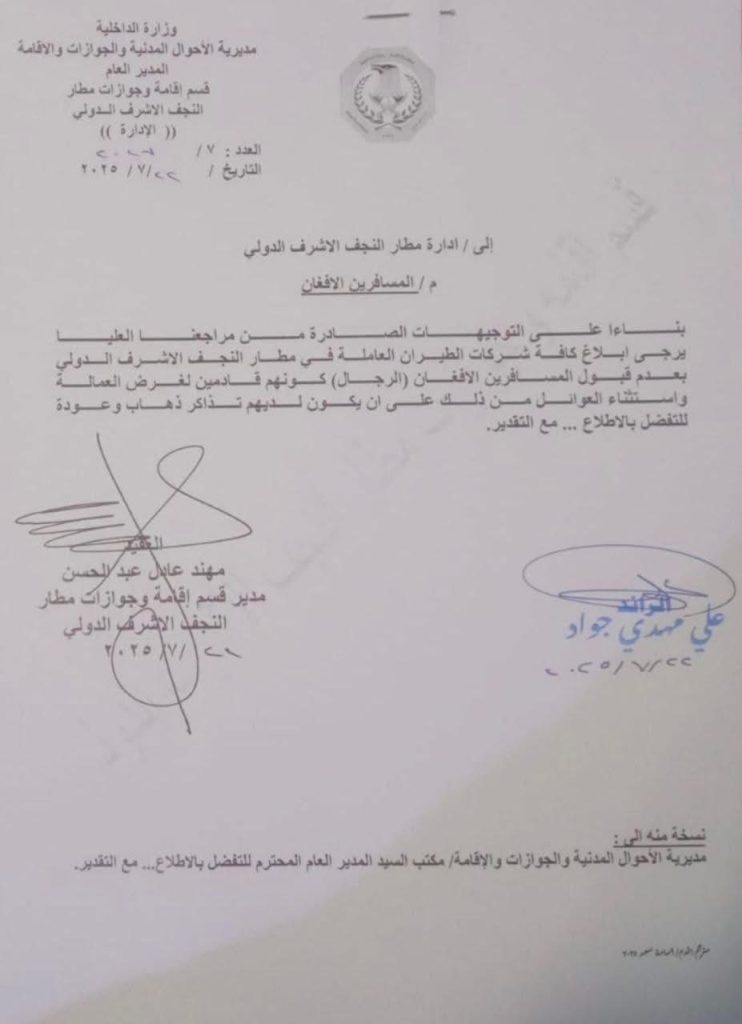 الرئيسية/سياسة/بعد ورورد معلومات عن قدومهم لغرض العمل.. الداخلية تمنع دخول الرجال الأفغان إلى العراق عبر مطار النجف وتستثني العوائل بشرط امتلاكهم تذاكر ذهاب وإياب سياسة بعد ورورد معلومات عن قدومهم لغرض العمل.. الداخلية تمنع دخول الرجال الأفغان إلى العراق عبر مطار النجف وتستثني العوائل بشرط امتلاكهم تذاكر ذهاب وإياب شاركها فيسبوك X لينكدإن Tumblr بينتيريست Reddit VKontakte Odnoklassniki Pocket مشاركة عبر البريد طباعة