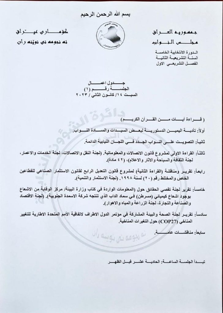 وادناه جدول اعمال الجلسة :ـ