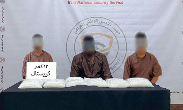 وذكرت الخلية في بيان ورد لوكالة هنا العراق الاخبارية انه “بجهود استخبارية متميزة وبعد استحصال الموافقات القضائية، نجحت مفارز الأمن الوطني في واسط في نصب كمين محكم أفضى إلى الإطاحة بشبكة مخدرات مكونة من ثلاثة عناصر أحدهم أجنبي الجنسية متلبسين بالجرم المشهود، إذ ضُبطت بحوزتهم كميات كبيرة من مادة الكرستال المخدرة بلغت (13) كيلو غرام”.