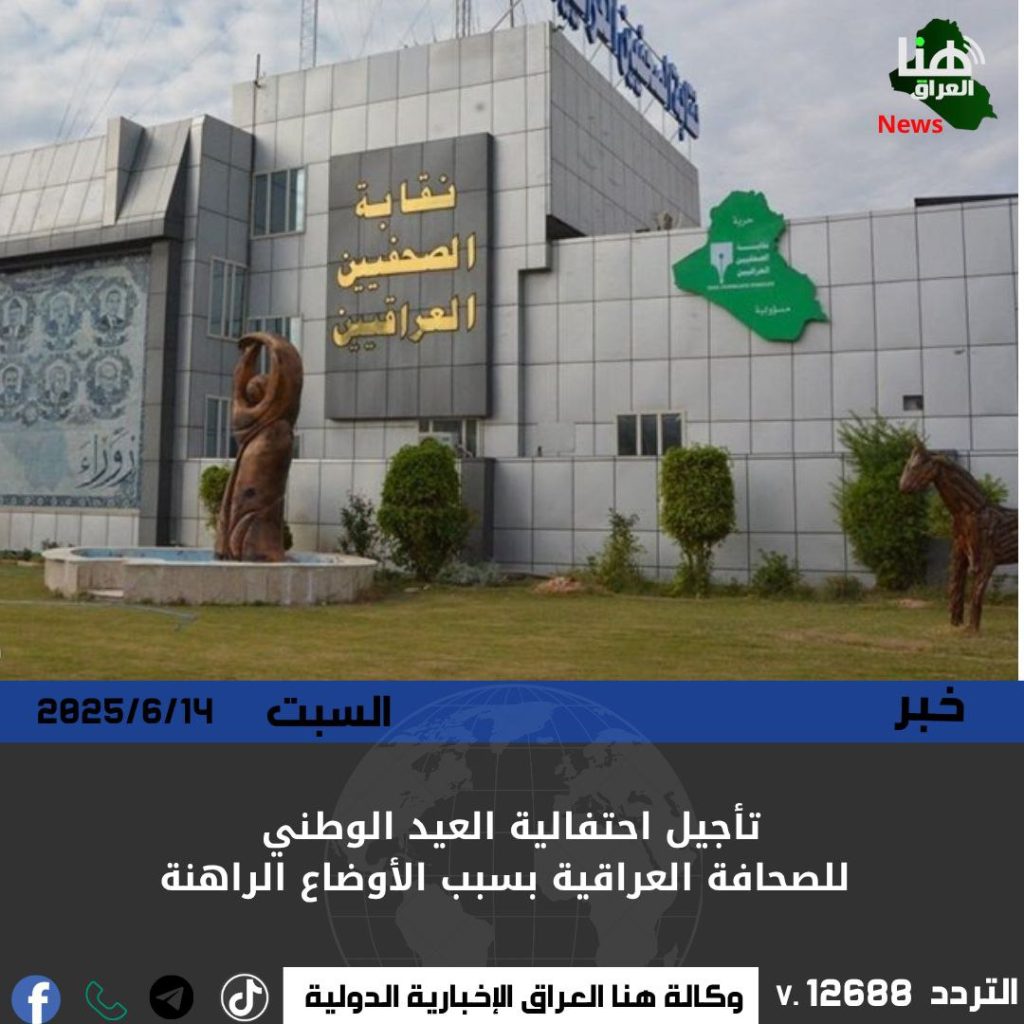 قررت نقابة الصحفيين العراقيين تأجيل الاحتفال بالعيد الوطني للصحافة العراقية الذي كان مقرراً إقامته خلال الأيام المقبلة، نظراً للظروف الأمنية والسياسية الطارئة التي تمر بها البلاد.