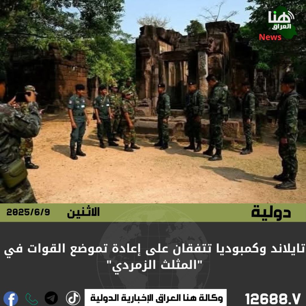 توصلت السلطات في كل من تايلاند وكمبوديا إلى اتفاق بشأن إعادة تموضع القوات في منطقة حدودية متنازع عليها، بعد اشتباك مسلح وقع الشهر الماضي وأدى إلى مقتل جندي كمبودي.