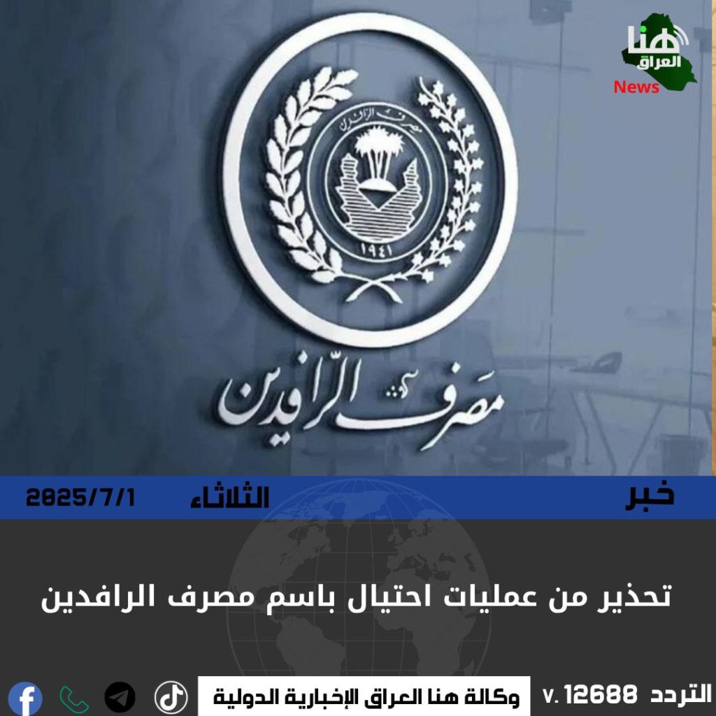 دعا مصرف الرافدين المواطنين إلى تجاهل أي رسائل أو مكالمات تطلب منهم تحديث بياناتهم أو تزعم فوزهم بجوائز مالية، مؤكداً أن موظفي المصرف لا يطلبون معلومات حساسة عبر الهاتف أو الرسائل النصية.