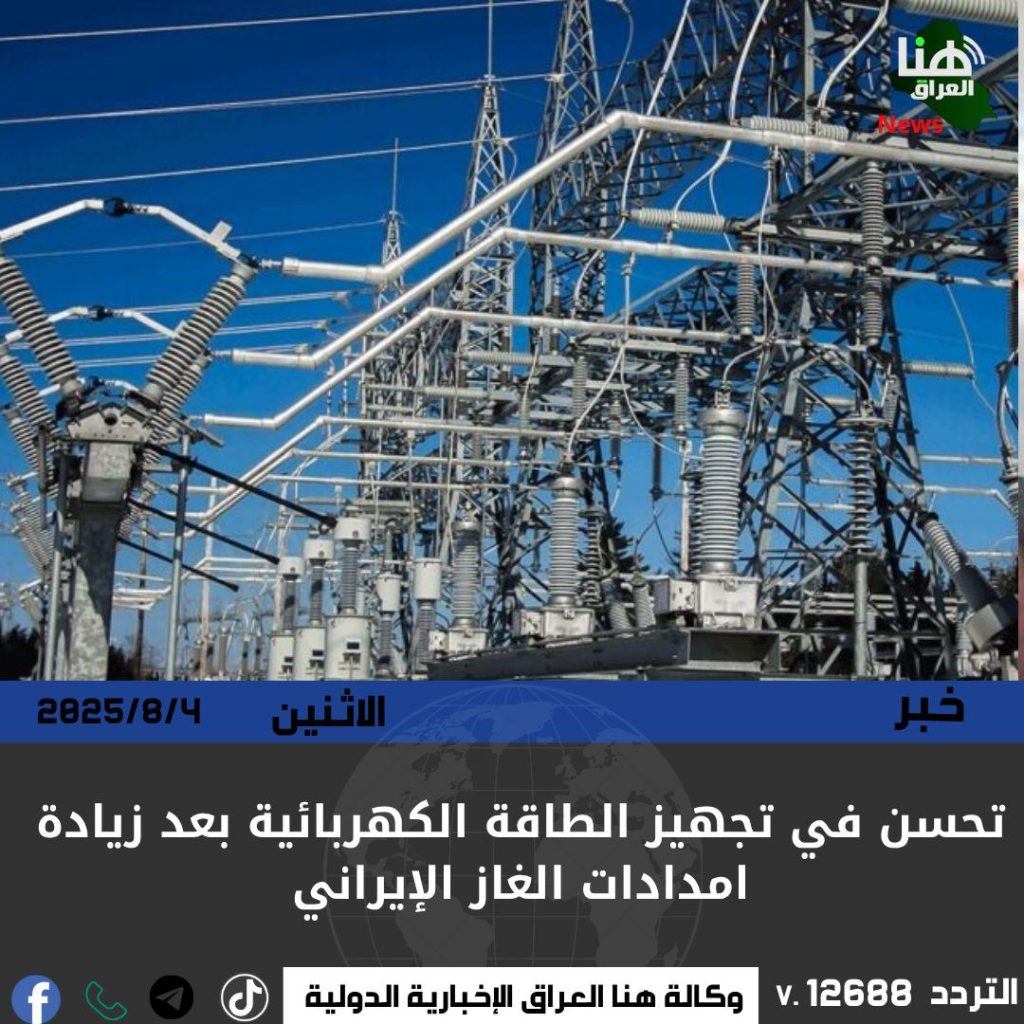أعلنت وزارة الكهرباء عن تحسن نسبي في تجهيز الطاقة نتيجة زيادة امدادات الغاز الإيراني، بعد مباحثات بين وزير الكهرباء ومسؤولين إيرانيين.