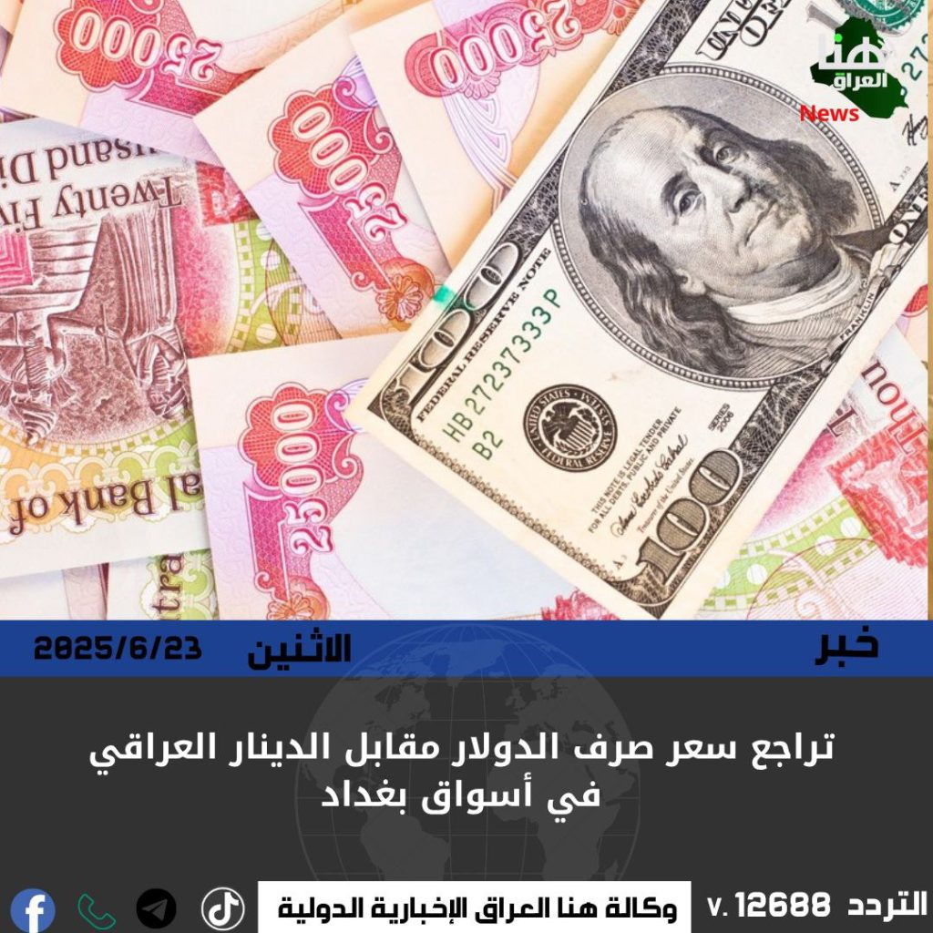 سجلت أسعار صرف الدولار الأميركي انخفاضًا أمام الدينار العراقي في أسواق العملة بالعاصمة بغداد، وسط تعاملات اليوم.