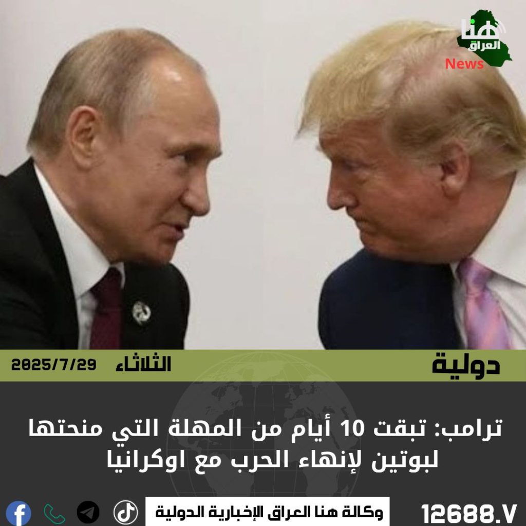 ترامب: تبقت 10 أيام من المهلة التي منحتها لبوتين لإنهاء الحرب مع اوكرانيا