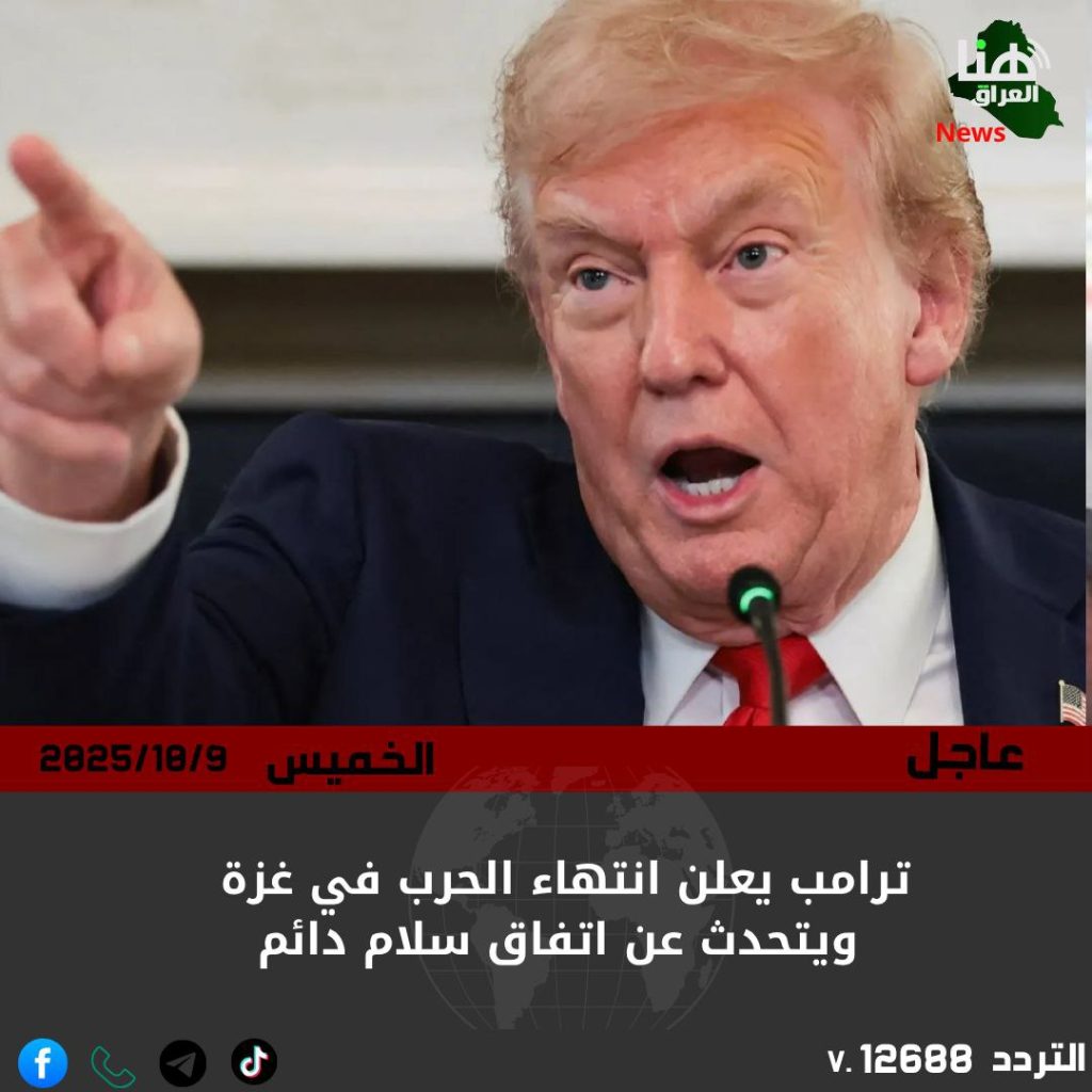 ترامب يعلن انتهاء الحرب في غزة ويتحدث عن اتفاق سلام دائم