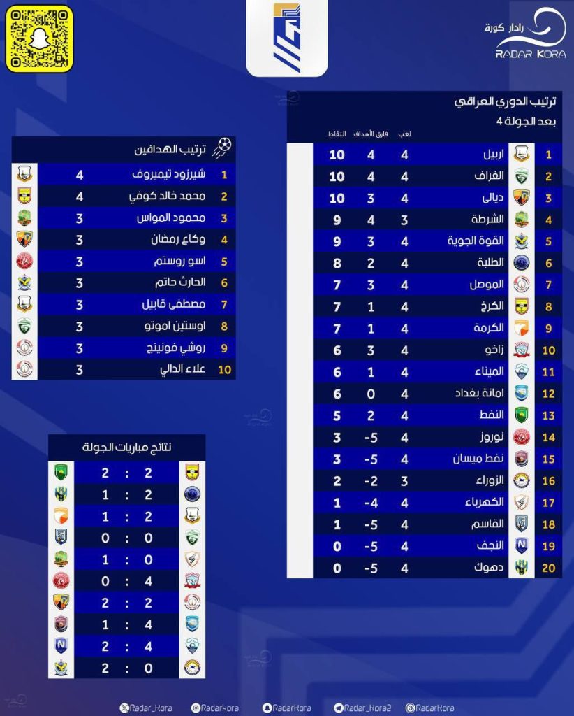 الرئيسية/رياضة/ترتيب الدوري العراقي بعد نهاية الجولة الـ 4 رياضة ترتيب الدوري العراقي بعد نهاية الجولة الـ 4 شاركها فيسبوك X لينكدإن Tumblr بينتيريست Reddit VKontakte Odnoklassniki Pocket مشاركة عبر البريد طباعة