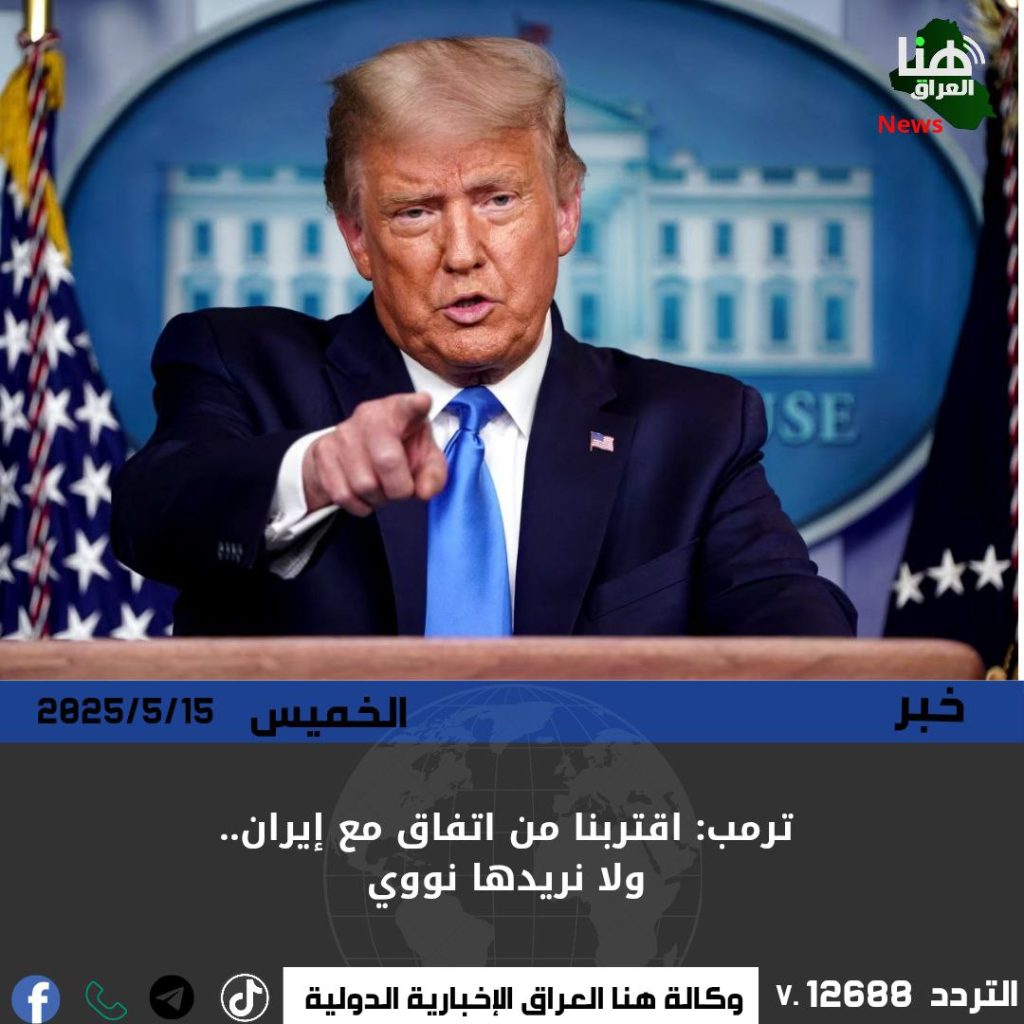 قال الرئيس الأميركي دونالد ترمب إن بلاده باتت قريبة من التوصل إلى اتفاق مع إيران، مشدداً على أن واشنطن لا تمانع أن تكون إيران دولة قوية، شرط ألا تمتلك السلاح النووي.