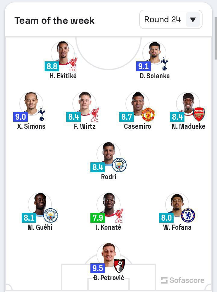 الرئيسية/رياضة/تشكيلة الأسبوع الرابع و العشرون من البريمييرليغ وفقًا لـ SofaScore رياضة تشكيلة الأسبوع الرابع و العشرون من البريمييرليغ وفقًا لـ SofaScore شاركها فيسبوك X لينكدإن Tumblr بينتيريست Reddit VKontakte Odnoklassniki Pocket مشاركة عبر البريد طباعة