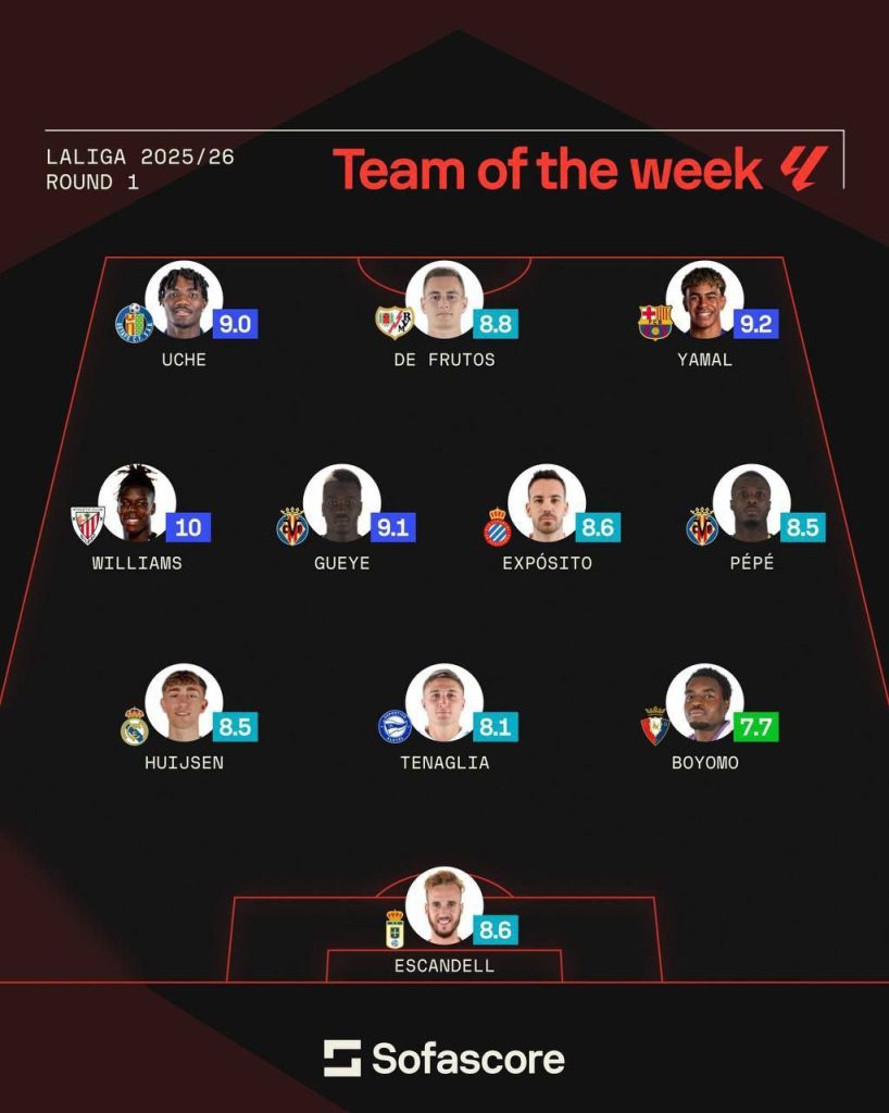 الرئيسية/رياضة/تشكيلة الجولة الأولى في الدوري الاسباني حسب [SofaScore] رياضة تشكيلة الجولة الأولى في الدوري الاسباني حسب [SofaScore] شاركها فيسبوك X لينكدإن Tumblr بينتيريست Reddit VKontakte Odnoklassniki Pocket مشاركة عبر البريد طباعة