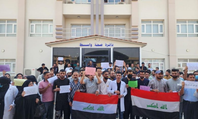 تظاهرة أمام دائرة صحة واسط