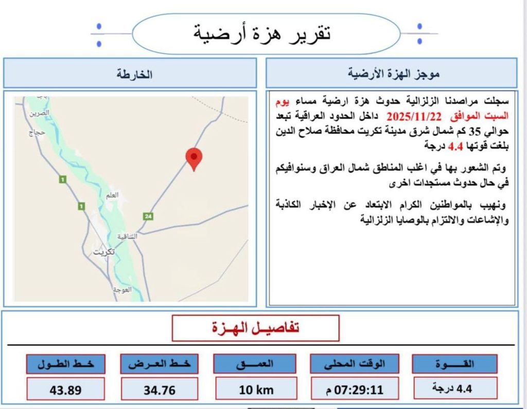 الرئيسية/الطقس/تفاصيل الهزة الأرضية التي سُجلت داخل الحدود العراقية على بعد نحو 35 كم شمال‑شرق مدينة تكريت بمحافظة صلاح الدين الطقسمحلي تفاصيل الهزة الأرضية التي سُجلت داخل الحدود العراقية على بعد نحو 35 كم شمال‑شرق مدينة تكريت بمحافظة صلاح الدين شاركها فيسبوك X لينكدإن Tumblr بينتيريست Reddit VKontakte Odnoklassniki Pocket مشاركة عبر البريد طباعة