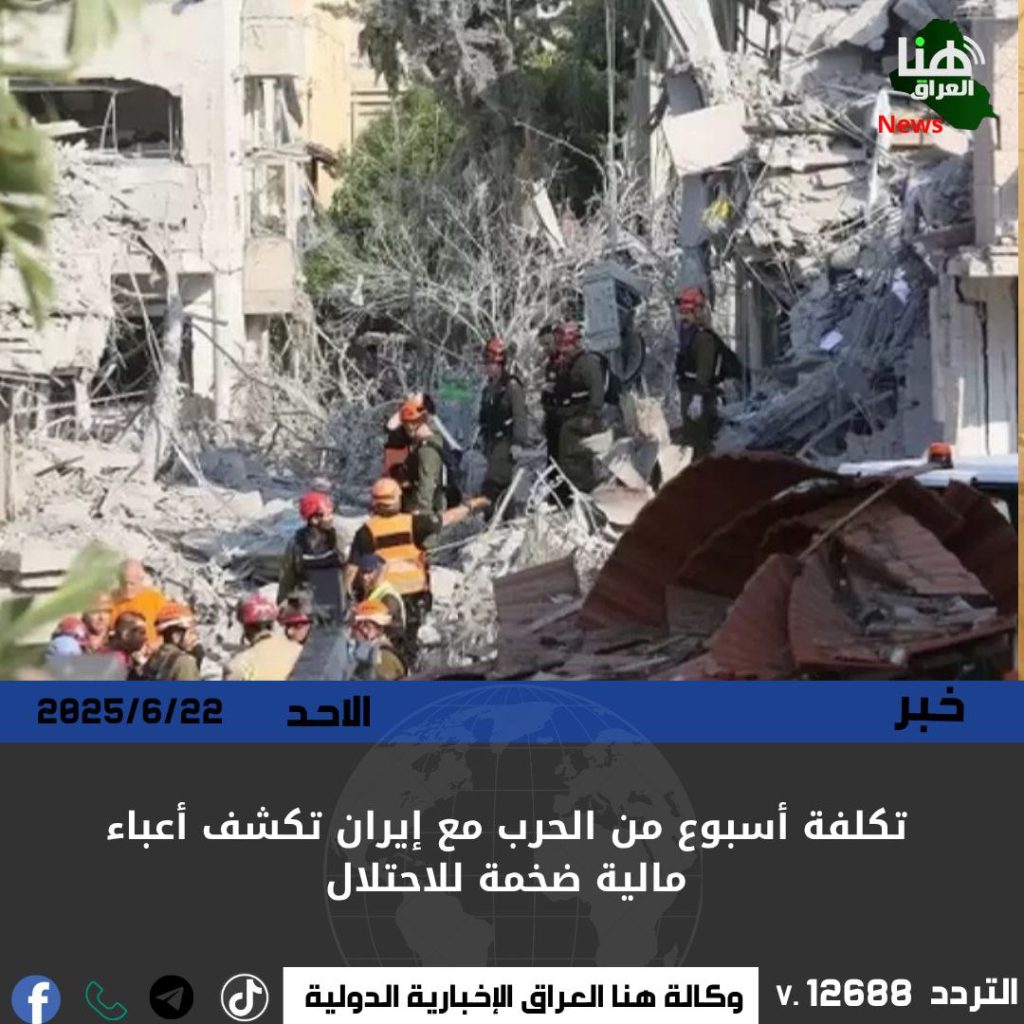 قدّرت تقارير عبرية تكلفة أسبوع واحد من العمليات العسكرية ضد إيران بـ12 مليار شيكل، تشمل 5 مليارات لأنظمة الدفاع الجوي، و3 مليارات للطلعات الجوية، والبقية للوجستيات وعمليات أمنية.