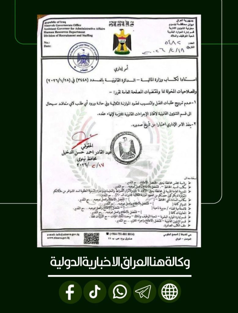 الرئيسية/محلي/توجيه جديد في نينوى بشأن طلبات النقل الوظيفي محلي توجيه جديد في نينوى بشأن طلبات النقل الوظيفي شاركها فيسبوك X لينكدإن Tumblr بينتيريست Reddit VKontakte Odnoklassniki Pocket مشاركة عبر البريد طباعة