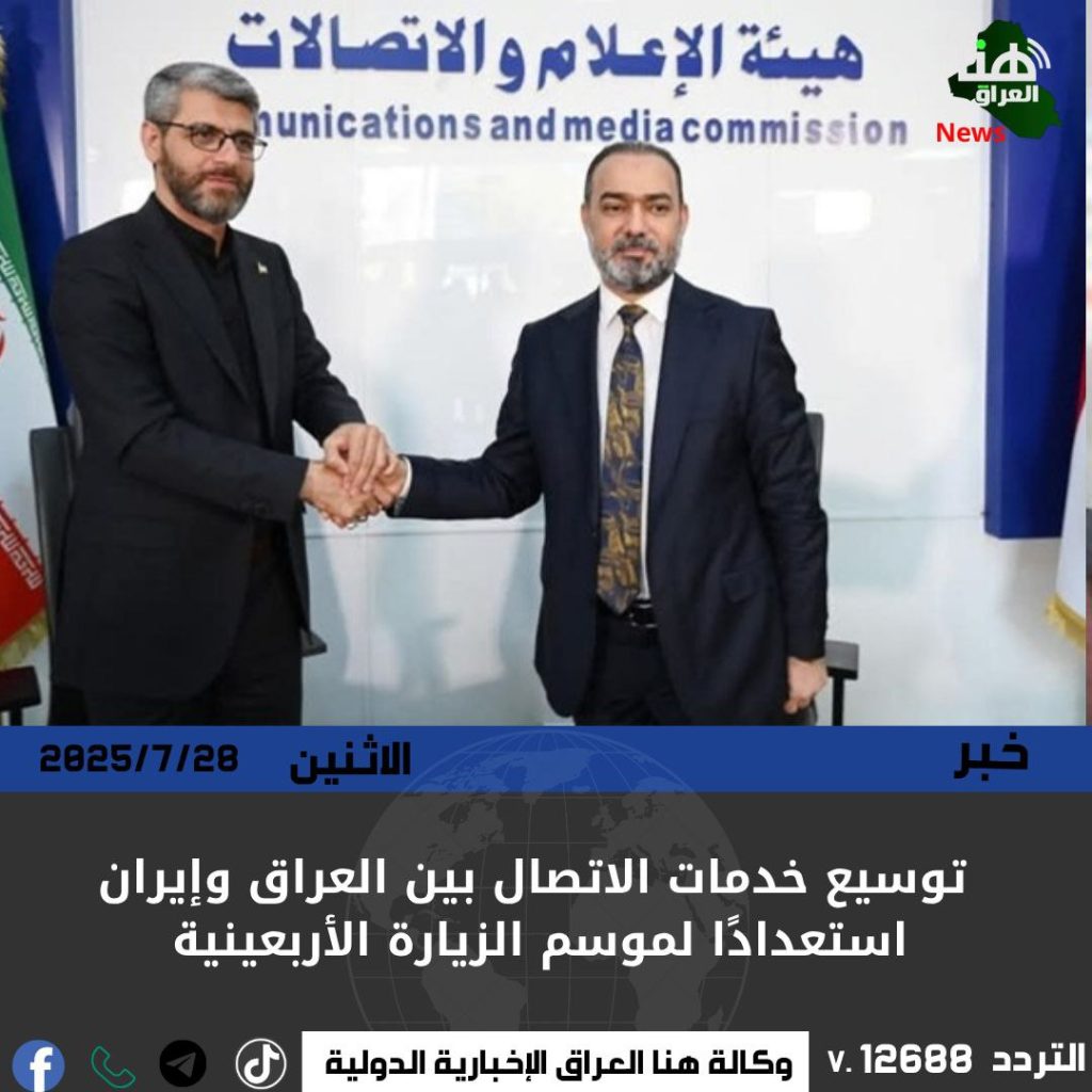 أعلنت هيأة الإعلام والاتصالات، اليوم، عن التوصل إلى تفاهمات مهمة مع نظيرتها في الجمهورية الإسلامية الإيرانية، تهدف إلى تعزيز خدمات الاتصال وتوسيع البنى التحتية خلال موسم الزيارة الأربعينية المرتقبة.