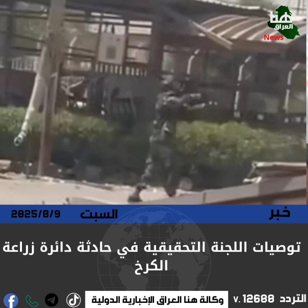 أعلن الناطق الرسمي باسم القائد العام للقوات المسلحة، عن توصيات اللجنة التحقيقية الخاصة بحادثة الاعتداء على دائرة زراعة الكرخ، والتي تضمنت إعفاء آمري اللواءين 45 و46 في الحشد الشعبي من مناصبهم، وتشكيل مجلس تحقيقي بحق قائد عمليات الجزيرة في الحشد الشعبي لتقصيره في مهام القيادة والسيطرة.