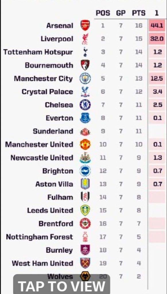 توقعات اوبتا للفائز بالبريميرليغ بعد مرور 7 جولات