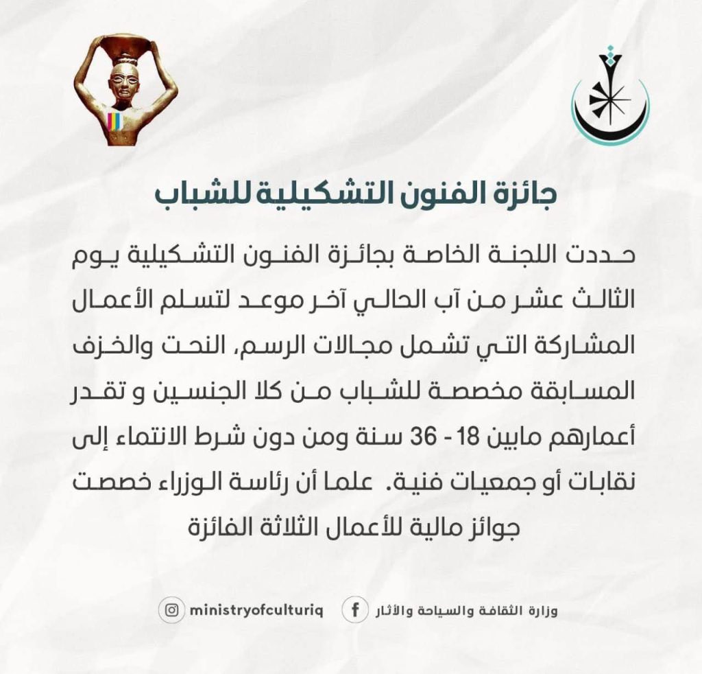 الرئيسية/ثقافة و فنون/جائزة الفنون التشكيلية للشباب تحدد يوم 13 آب آخر موعد لاستلام أعمال الرسم والنحت والخزف للشباب من 18 الى 36 عاماً وتنوه الى تخصيص جوائز مالية للأعمال الفائزة من رئاسة الوزراء. ثقافة و فنونمحلي جائزة الفنون التشكيلية للشباب تحدد يوم 13 آب آخر موعد لاستلام أعمال الرسم والنحت والخزف للشباب من 18 الى 36 عاماً وتنوه الى تخصيص جوائز مالية للأعمال الفائزة من رئاسة الوزراء. شاركها فيسبوك X لينكدإن Tumblr بينتيريست Reddit VKontakte Odnoklassniki Pocket مشاركة عبر البريد طباعة