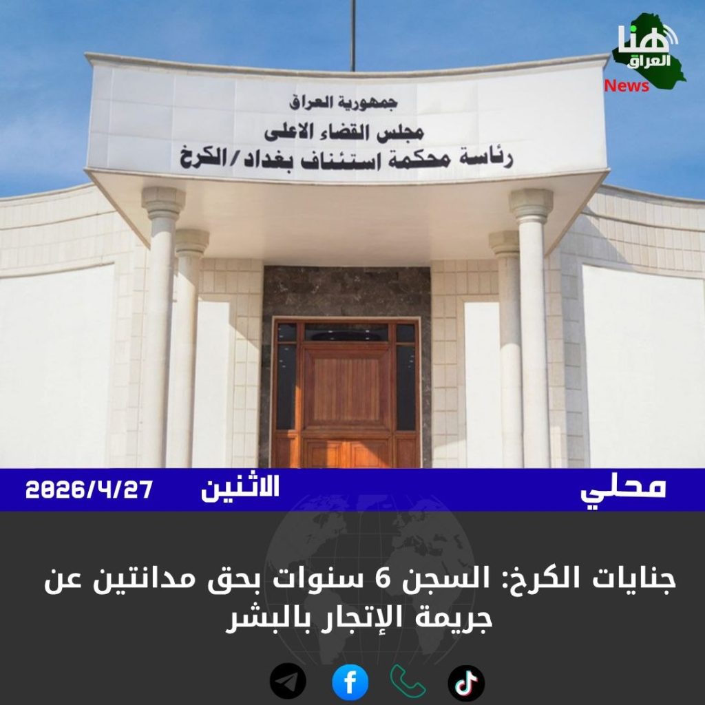 الرئيسية/امن/جنايات الكرخ: السجن 6 سنوات بحق مدانتين عن جريمة الإتجار بالبشر امنمحلي جنايات الكرخ: السجن 6 سنوات بحق مدانتين عن جريمة الإتجار بالبشر شاركها فيسبوك X لينكدإن Tumblr بينتيريست Reddit VKontakte Odnoklassniki Pocket مشاركة عبر البريد طباعة