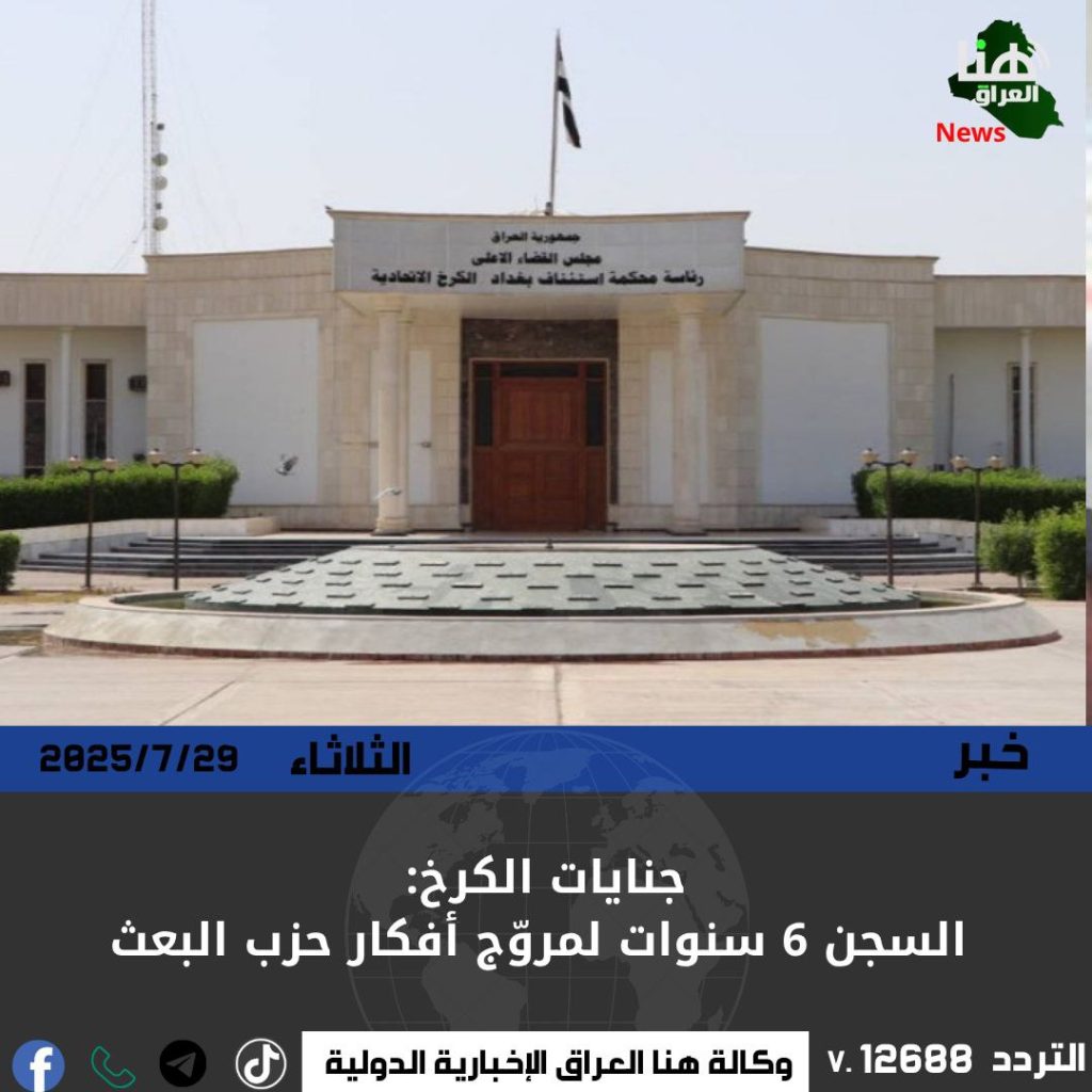 جنايات الكرخ: السجن 6 سنوات لمروّج أفكار حزب البعث