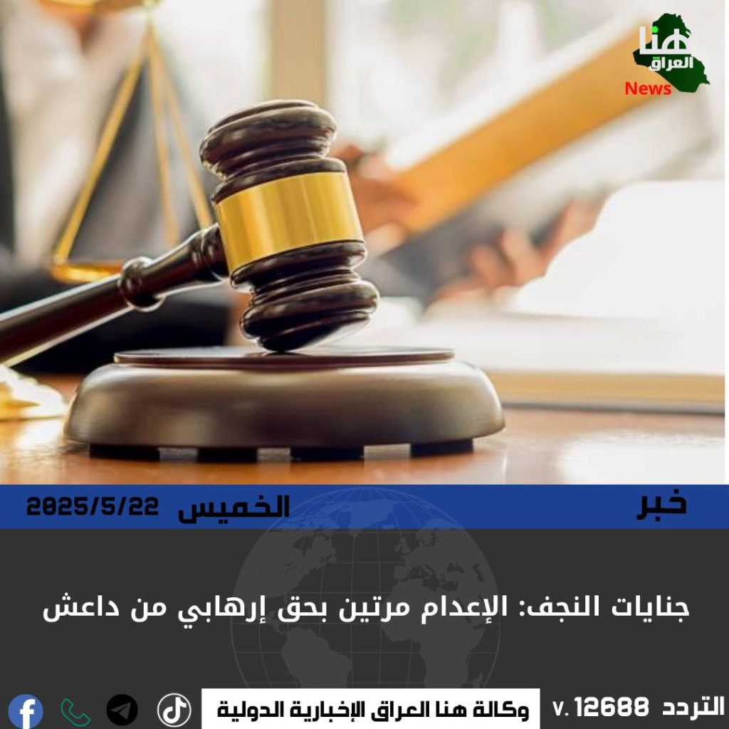أصدرت محكمة جنايات النجف حكماً بالإعدام مرتين على أحد عناصر تنظيم داعش الإرهابي بعد إدانته بارتكاب جرائم قتل بحق مدنيين وقوات أمنية، في خطوة تأتي ضمن ملاحقة فلول الإرهاب ومحاسبة مرتكبي الجرائم ضد الشعب العراقي.
