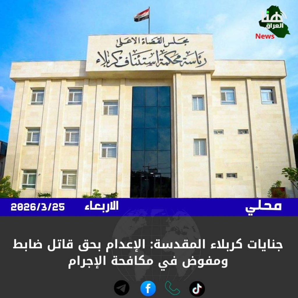 الرئيسية/امن/جنايات كربلاء المقدسة: الإعدام بحق قاتل ضابط ومفوض في مكافحة الإجرام امنسياسةمحلي جنايات كربلاء المقدسة: الإعدام بحق قاتل ضابط ومفوض في مكافحة الإجرام شاركها فيسبوك X لينكدإن Tumblr بينتيريست Reddit VKontakte Odnoklassniki Pocket مشاركة عبر البريد طباعة