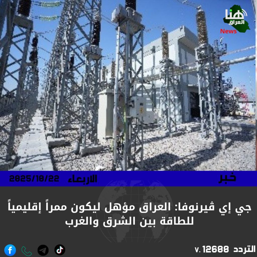 جي إي ڤيرنوفا: العراق مؤهل ليكون ممراً إقليمياً للطاقة بين الشرق والغرب