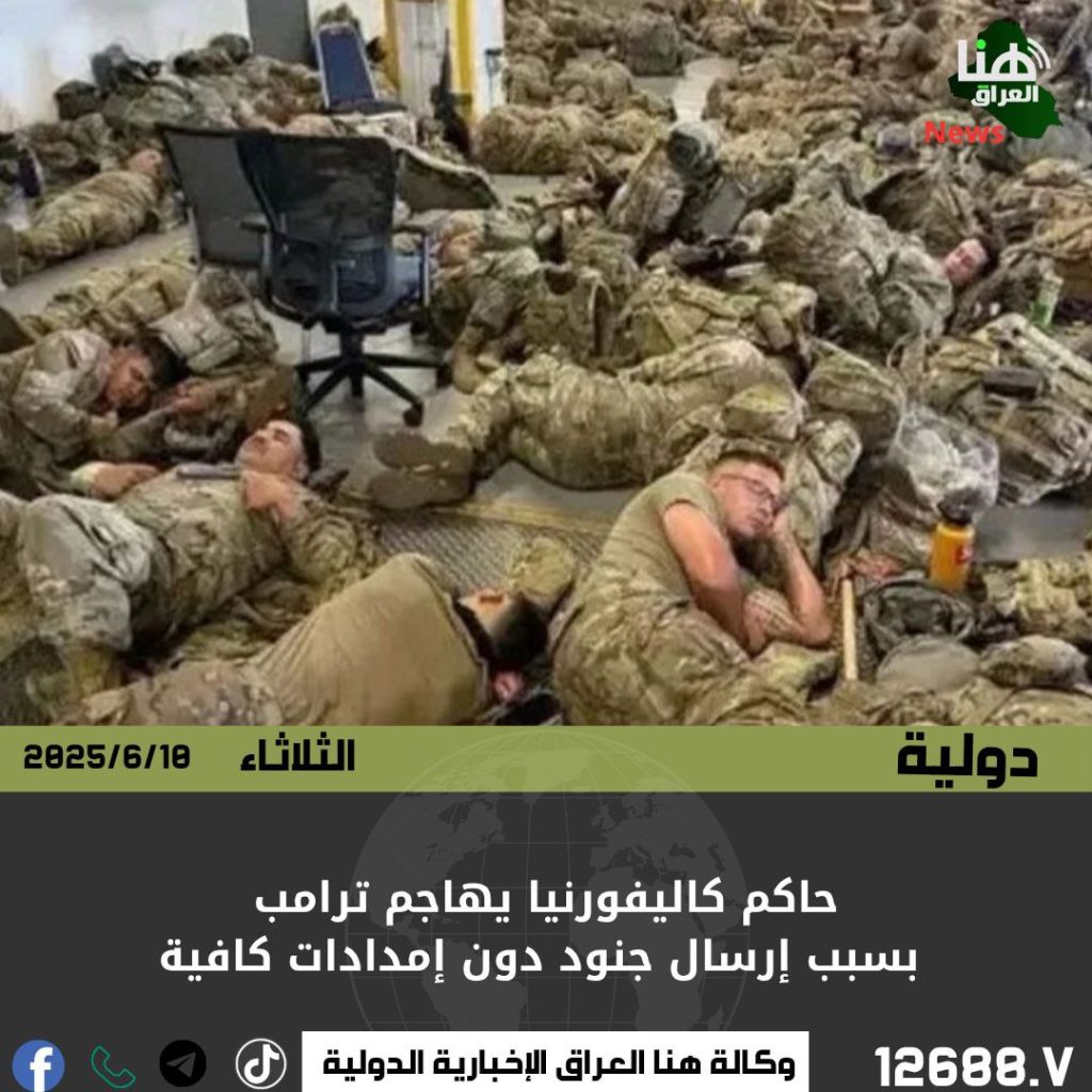 انتقد حاكم كاليفورنيا، غافين نيوسوم، الرئيس الأمريكي دونالد ترامب بعد نشر صور تظهر جنود الحرس الوطني وهم نائمون على الأرض بسبب نقص الإمدادات. وقال نيوسوم عبر منصة “إكس”: “هذا استغلال لغرور رئيس خطير، ولا يحترم الجنود الذين خدموا البلاد”. وجاءت تصريحاته بعد إعلان البنتاغون إرسال آلاف الجنود إلى لوس أنجلوس لمواجهة الاحتجاجات المناهضة لسياسات ترامب.