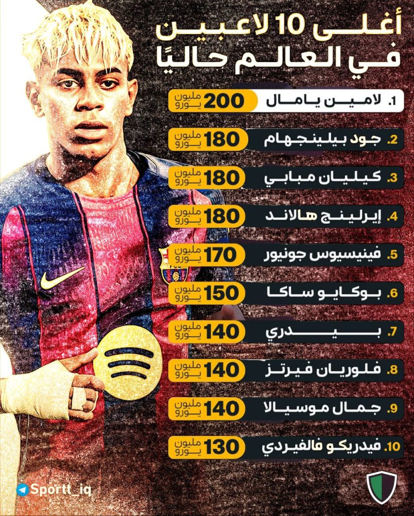 حسب موقع “ترانسفير ماركت” أغلى 10 لاعبين في العالم حالياً.