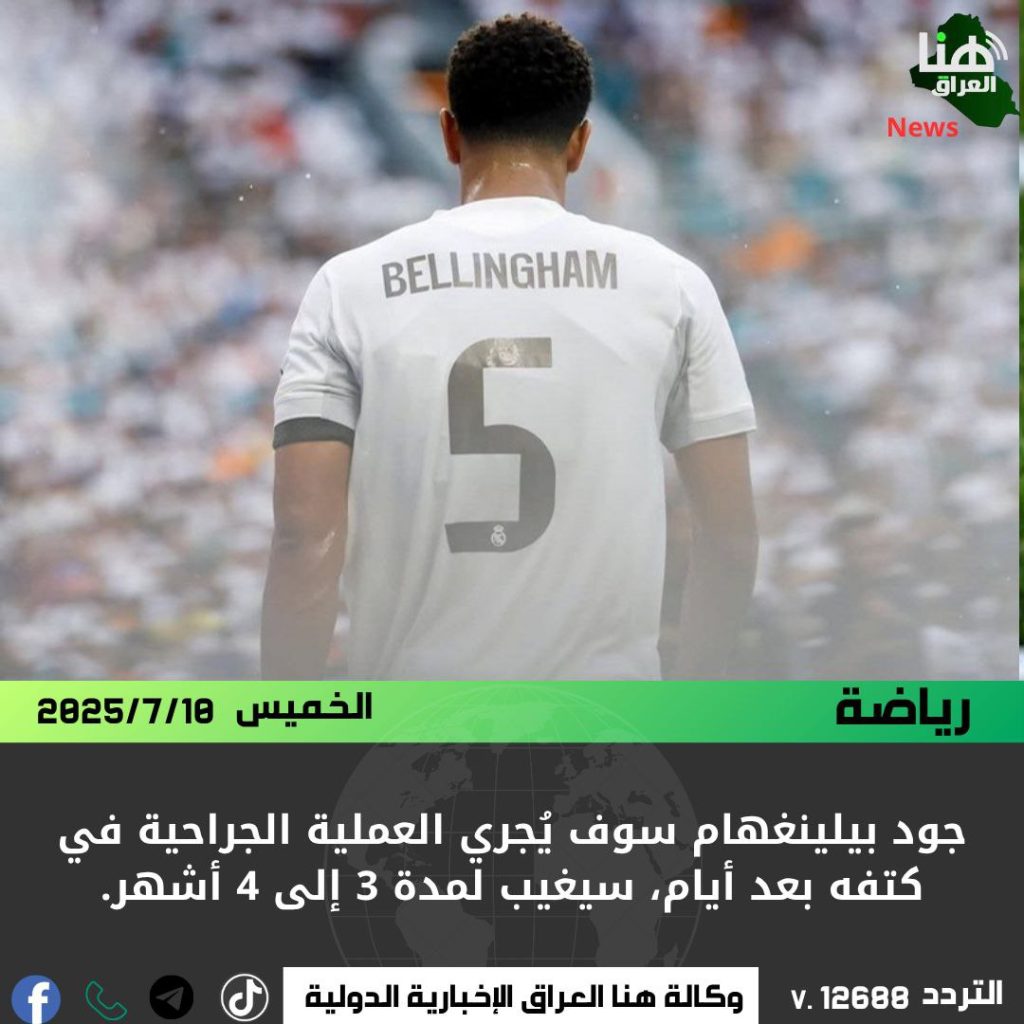 الرئيسية/دولي/حسب MARCA: جود بيلينغهام سوف يُجري العملية الجراحية في كتفه بعد أيام، سيغيب لمدة 3 إلى 4 أشهر. دولي حسب MARCA: جود بيلينغهام سوف يُجري العملية الجراحية في كتفه بعد أيام، سيغيب لمدة 3 إلى 4 أشهر. شاركها فيسبوك X لينكدإن Tumblr بينتيريست Reddit VKontakte Odnoklassniki Pocket مشاركة عبر البريد طباعة