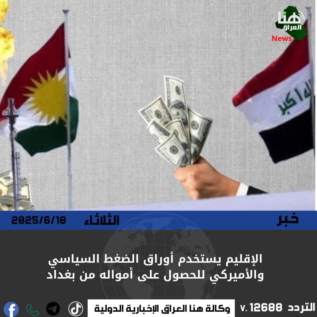 أكد عضو حركة حقوق، صباح العكيلي، اليوم الأربعاء، أن إقليم كردستان يواصل الاعتماد على أدوات الضغط السياسي والدعم الأميركي في محاولاته للحصول على أموال إضافية من الحكومة الاتحادية، رغم تسلّمه مستحقاته ضمن قانون الموازنة العامة.