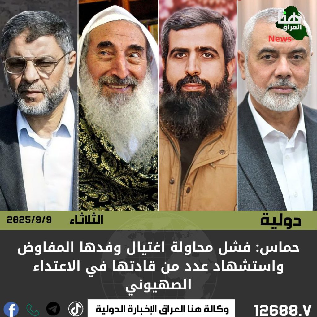 أكدت حركة حماس، اليوم، فشل الاعتداء الصهيوني في اغتيال وفدها المفاوض خلال الهجوم الذي استهدف الدوحة.