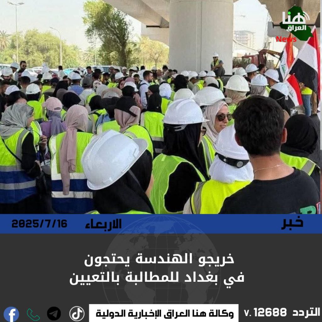 نظم العشرات من خريجي كليات الهندسة وقفة احتجاجية قرب الجسر المعلّق في بغداد، طالبوا خلالها بفرص تعيين منصفة، ورفض سياسة تهميش شريحة المهندسين في ظل المشاريع الحكومية الكبرى.