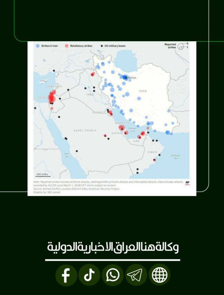 خريطة الهجمات في الشرق الأوسط منذ بداية الحرب