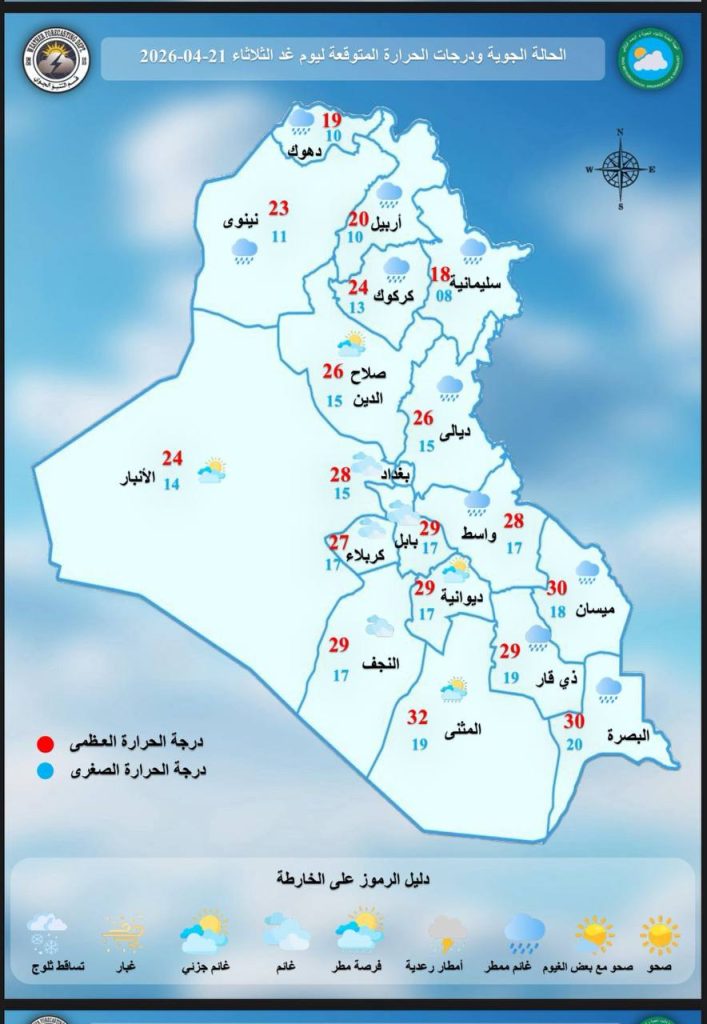 درجات الحرارة المتوقعة في المحافظات العراقية غداً