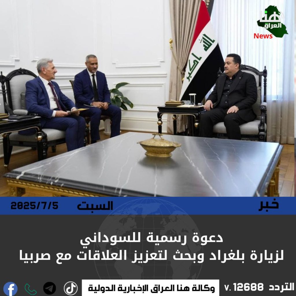 تلقى رئيس الوزراء محمد شياع السوداني دعوة رسمية من نظيره الصربي لزيارة العاصمة بلغراد، خلال لقائه بالسفير الصربي في بغداد.