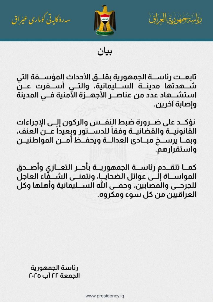 الرئيسية/دولي/رئاسة الجمهورية: نؤكد على ضرورة ضبط النفس والركون إلى الإجراءات القانونية والقضائية وفقاً للدستور وبعيداً عن العنف وبما يرسخ مبادئ العدالة ويحفظ أمن المواطنين واستقرارهم دوليسياسةمحلي رئاسة الجمهورية: نؤكد على ضرورة ضبط النفس والركون إلى الإجراءات القانونية والقضائية وفقاً للدستور وبعيداً عن العنف وبما يرسخ مبادئ العدالة ويحفظ أمن المواطنين واستقرارهم شاركها فيسبوك X لينكدإن Tumblr بينتيريست Reddit VKontakte Odnoklassniki Pocket مشاركة عبر البريد طباعة