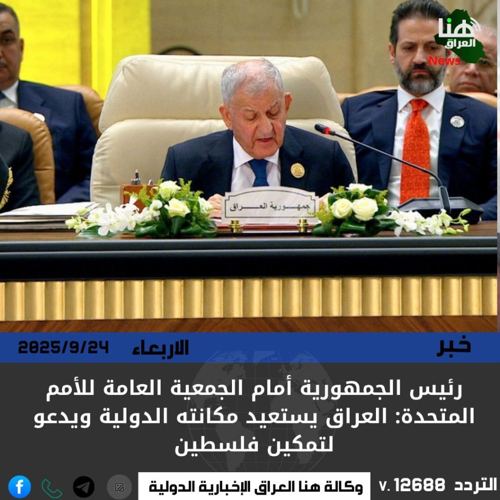 وفي الشأن الإقليمي، اعتبر الرئيس أن ما يجري في غزة دليل صارخ على الانتقائية في تطبيق مبادئ حقوق الإنسان، مجدداً دعوة العراق لتفعيل القرارات الأممية وتمكين الشعب الفلسطيني من إقامة دولته المستقلة، مؤكداً أن ذلك هو المدخل الحقيقي لتحقيق الاستقرار في الشرق الأوسط والعالم.