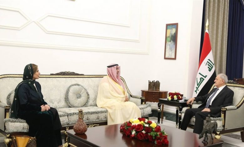 وأضاف البيان أن “ذلك جاء خلال استقبال السفير السعودي لدى العراق عبد العزيز الشمري في قصر السلام ب‍بغداد“، مشيرا الى “الشمري هنأ رشيد بمناسبة تسنمه منصب رئيس الجمهورية، معبّراً عن أمنياته بالنجاح والتوفيق في أداء مهام منصبه وبما يخدم تعضيد العلاقات بين البلدين”.