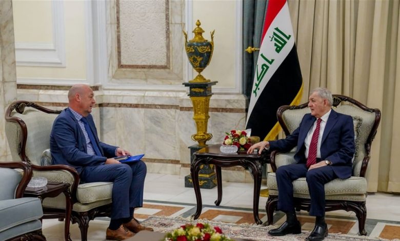 وذكر بيان لرئاسة الجمهورية، في بيان ورد للقناة هنا العراق الاخبارية أن “رشيد، استقبل في قصر بغداد، الممثل المقيم لبرنامج الأمم المتحدة الإنمائي في العراق (UNDP) آوكي لوتسما الذي سلّم رئيس الجمهورية دعوة رسمية من الأمين العام للأمم المتحدة أنطونيو غوتيريش لحضور مؤتمر المياه من أجل التنمية المستدامة الذي سينعقد في نيويورك”.