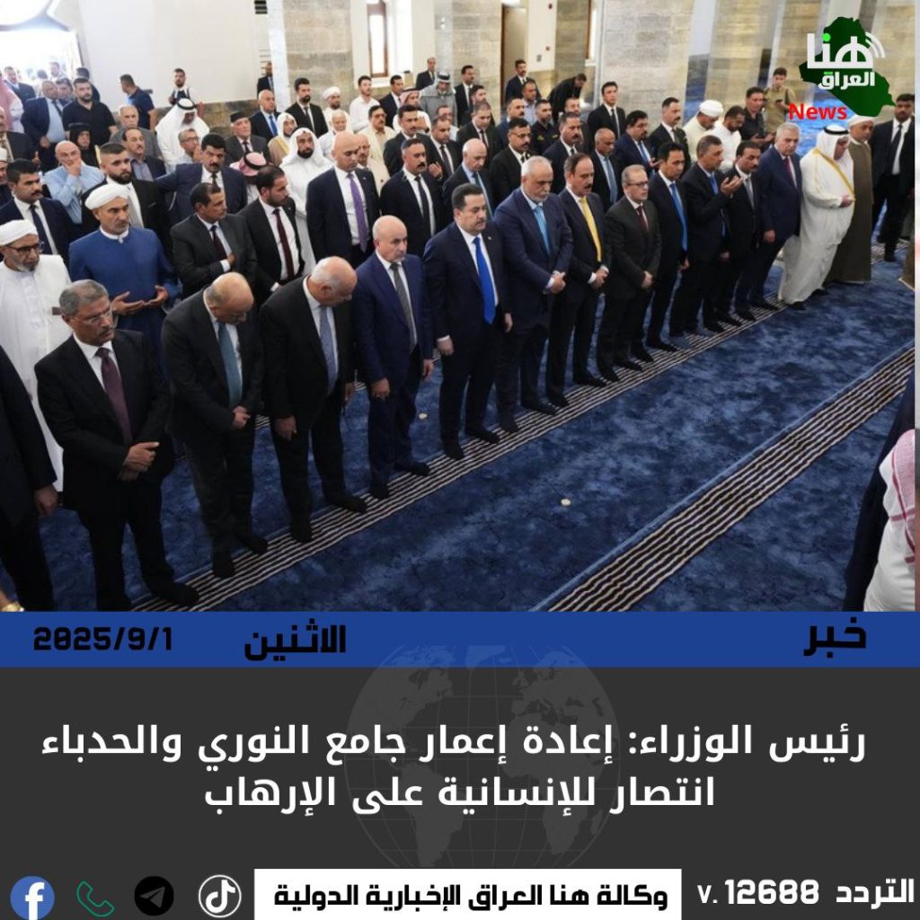 رحب رئيس الوزراء بجهود الأصدقاء ودولة الإمارات العربية المتحدة في دعم إعادة إعمار جامع النوري والمئذنة الحدباء، مؤكداً أن الموصل تعود بهمّة أبنائها لتلتقي مع حب الوطن في رفع اسم الله على مئذنة تمثل التاريخ والإرث.