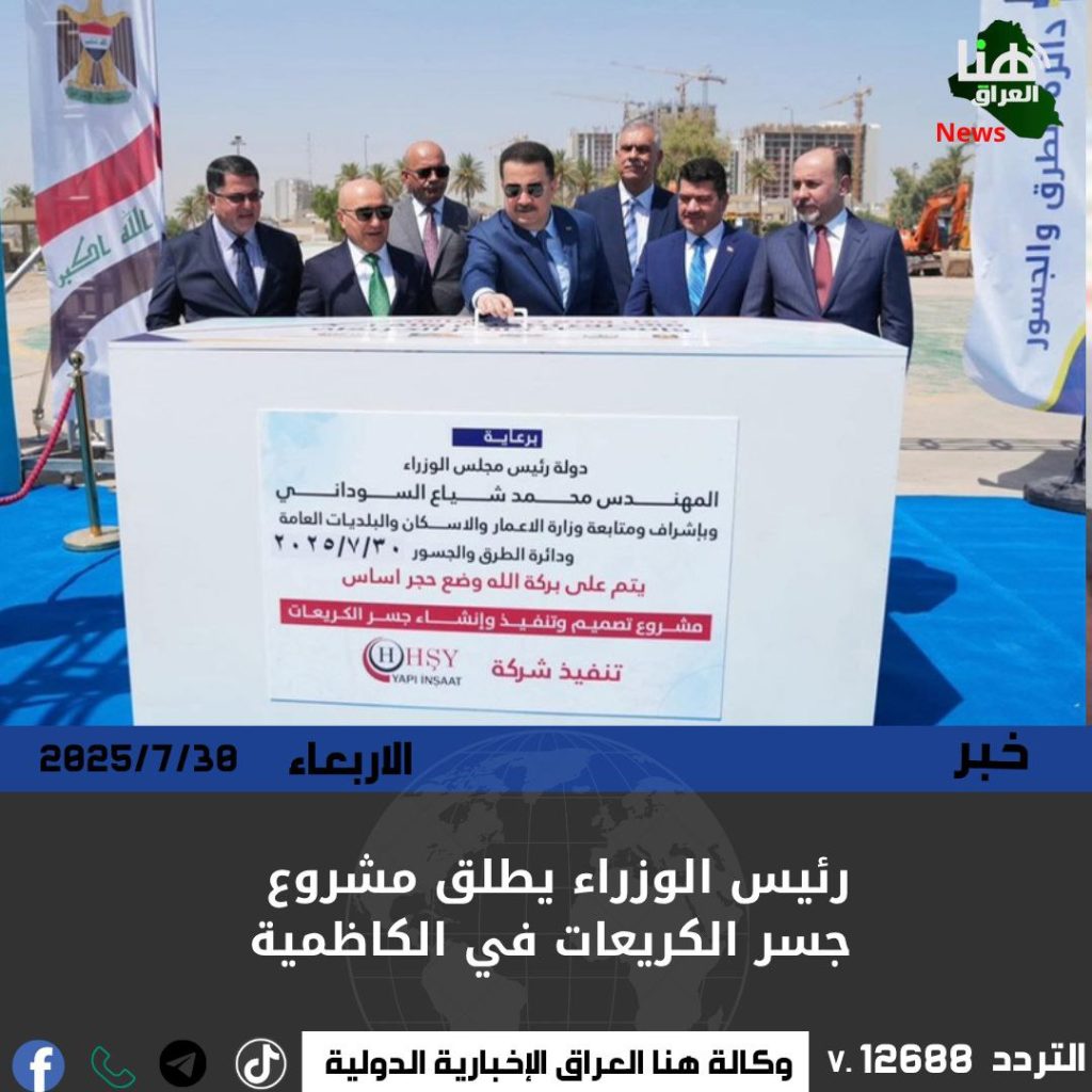 أطلق رئيس الوزراء محمد شياع السوداني الأعمال التنفيذية لمشروع جسر الكريعات في مدينة الكاظمية، ضمن حملة الإعمار الواسعة للمدينة.