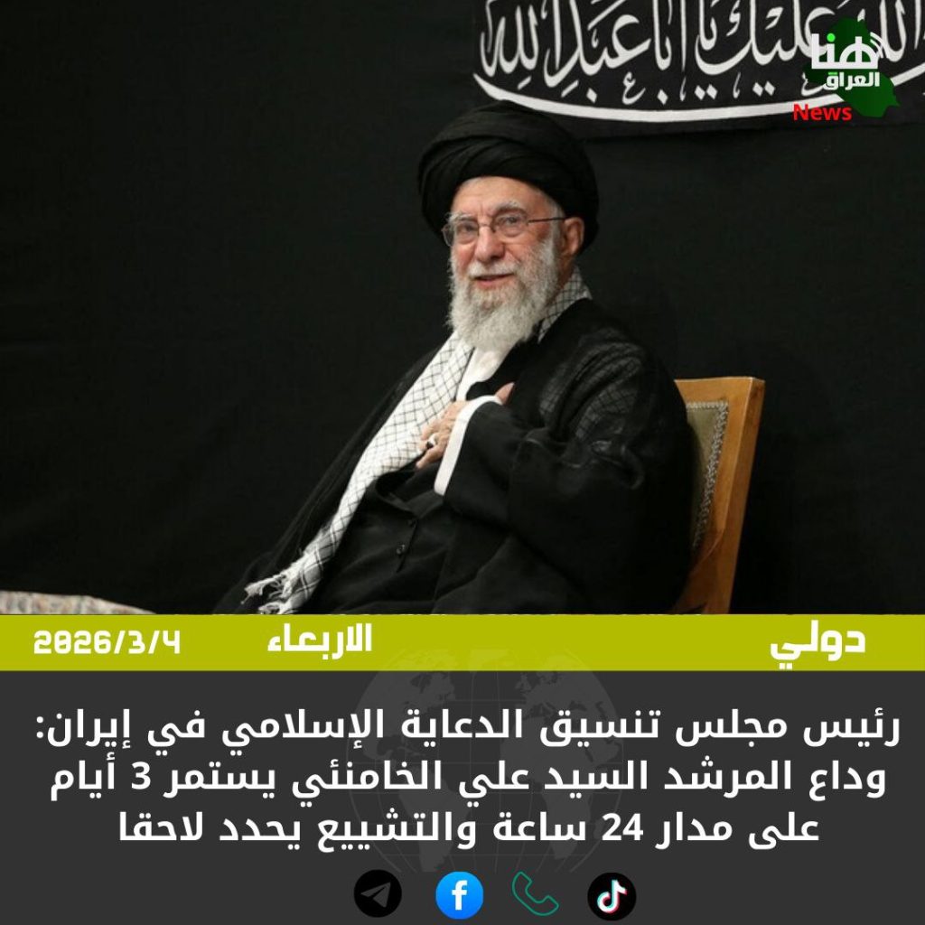 الرئيسية/دولي/رئيس مجلس تنسيق الدعاية الإسلامي في إيران: وداع المرشد السيد علي الخامنئي يستمر 3 أيام على مدار 24 ساعة والتشييع يحدد لاحقا دولي رئيس مجلس تنسيق الدعاية الإسلامي في إيران: وداع المرشد السيد علي الخامنئي يستمر 3 أيام على مدار 24 ساعة والتشييع يحدد لاحقا شاركها فيسبوك X لينكدإن Tumblr بينتيريست Reddit VKontakte Odnoklassniki Pocket مشاركة عبر البريد طباعة