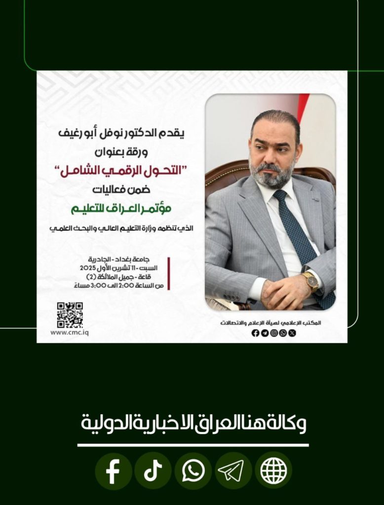 وستنطلق أعمال المؤتمر في جامعة بغداد – يوم السبت الموافق 11 تشرين الأول 2025 الساعة الثانية مساءً.