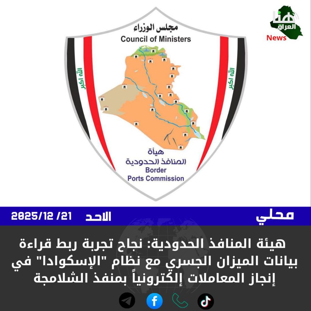 الرئيسية/امن/رئيس هيئة المنافذ الحدودية: نجاح تجربة ربط قراءة بيانات الميزان الجسري مع نظام “الإسكوادا” في إنجاز المعاملات إلكترونياً بمنفذ الشلامجة امنمحلي رئيس هيئة المنافذ الحدودية: نجاح تجربة ربط قراءة بيانات الميزان الجسري مع نظام “الإسكوادا” في إنجاز المعاملات إلكترونياً بمنفذ الشلامجة شاركها فيسبوك X لينكدإن Tumblr بينتيريست Reddit VKontakte Odnoklassniki Pocket مشاركة عبر البريد طباعة