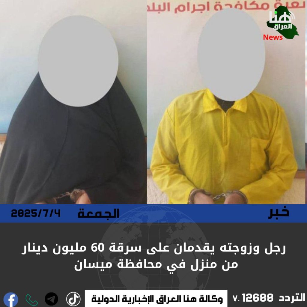 الرئيسية/امن/رجل وزوجته يقدمان على سرقة 60 مليون دينار من منزل في محافظة ميسان امنمحلي رجل وزوجته يقدمان على سرقة 60 مليون دينار من منزل في محافظة ميسان شاركها فيسبوك X لينكدإن Tumblr بينتيريست Reddit VKontakte Odnoklassniki Pocket مشاركة عبر البريد طباعة
