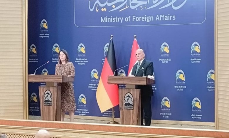 وقالت وزير الخارجية الألمانية في مؤتمر صحفي مع نظيرها العراقي فؤاد حسين: “هذا أمر غير مقبول وخطير على المنطقة بأسرها”.