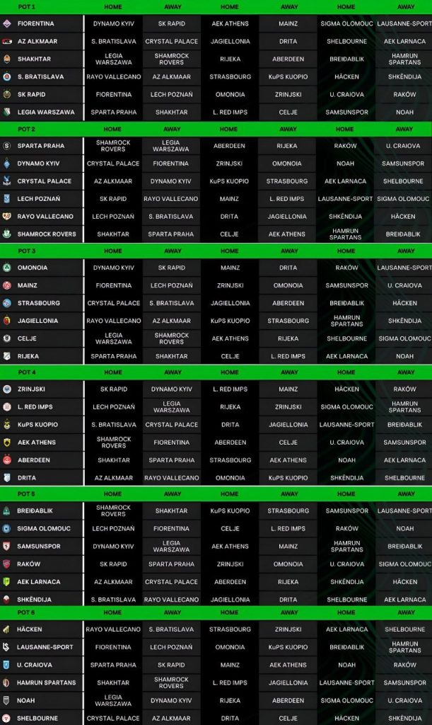 رسمياً جميع مواجهات دوري المؤتمر الأوروبي لـ موسم 2025/2026.