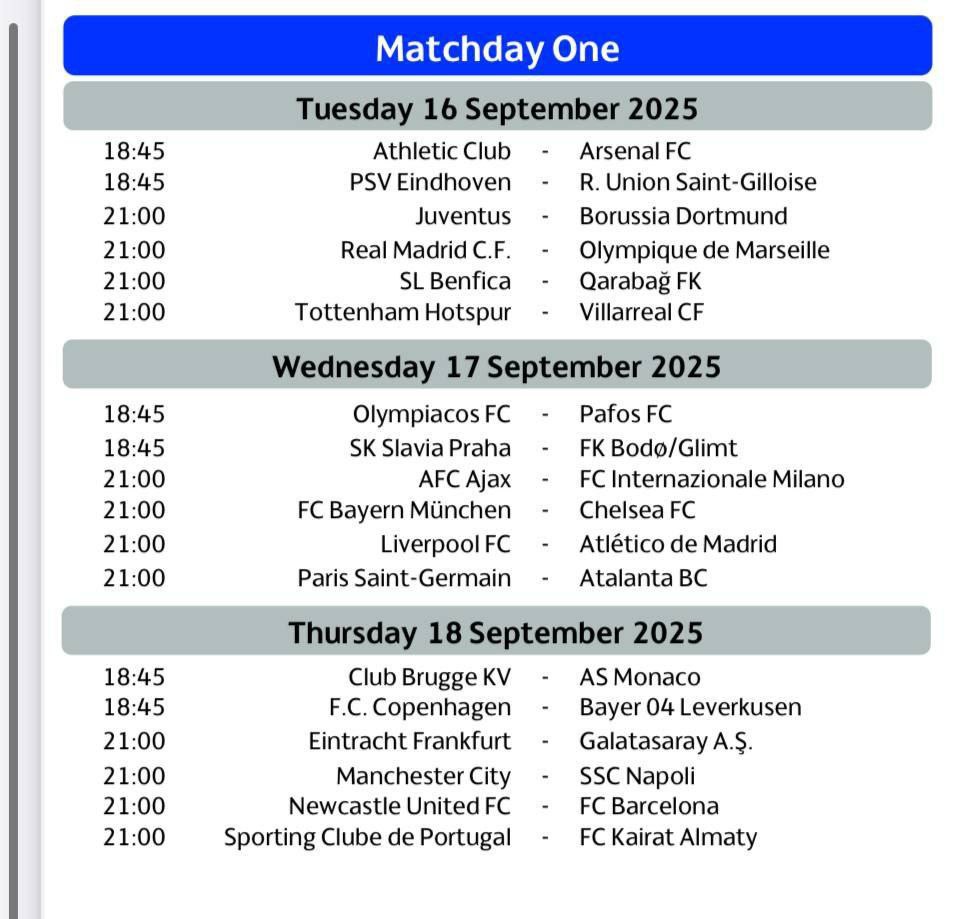 الرئيسية/رياضة/رسمياً مواعيد الجولة الأولى في دوري أبطال أوروبا رياضة رسمياً مواعيد الجولة الأولى في دوري أبطال أوروبا شاركها فيسبوك X لينكدإن Tumblr بينتيريست Reddit VKontakte Odnoklassniki Pocket مشاركة عبر البريد طباعة