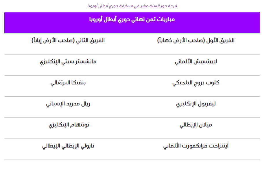 نتائج قرعة دور الـ 16 من دوري أبطال أوروبا